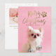Spread cheer with this modern on trend stylish holiday pet theme photo card perfect for dog and cat lovers! Featuring an overlay of words Merry Christmas in a handwritten script modern typography style and matching paw print in faux gold foil. Add 2 photos OR keep Sparkle the Tiny Chi for added glam and your personal message to this chic fun holiday pet photo design and make it your own one-of-a-kind original holiday card. Second photo on back. PHOTO TIP: Pre-crop your photo similar to template photos BEFORE uploading and/or use the CROP tool in the PERSONALIZE section to adjust placement within the template area. For help with design or personalization or transferring design to another product, contact designer BEFORE ORDERING via the Zazzle Chat MESSAGE tab below or email thepetstarofficial@gmail.com. For more fun follow @sparklethetinychi on Instagram and Facebook © Marisu Valencia - All Rights Reserved