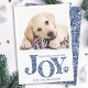 Personalized Pet Photo JOY Blue Paw Print Dog Holiday Card