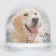 Personalized pet photo snow globe features a favourite picture of your dog or cat along with their name in modern and minimal sans serif text. This custom two sided design allows you to use the same photo and pet name on both sides, or you can choose to customize each side with a different photo or pet. Makes a beautiful keepsake gift and remembrance to display in honour of your furry family member.