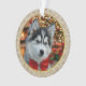 The front of the ornament features a cherished photograph of your pet (e.g., "Rocky," a husky puppy with a red bow).