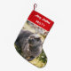 Personalized Pet Photo Monogram Name Red Small Christmas Stocking. Easy to edit text. The image is shown for illustration purpose only and you can replace it with your pet photo.