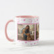 Sip your morning coffee or tea and remember your beloved furry friends with this charming mug. Designed especially for pet lovers, this cup allows you to proudly display three of your favorite pet photos in attractive pink-bordered frames. The white mug features a delightful pattern of pastel pink paw prints and tiny hearts around the rim and base, plus a matching pink handle and interior. Whether you're a dog parent, cat owner, or both, this mug is a heartwarming way to keep your companions close. It's the perfect personalized gift for birthdays, Mother's Day, or just because you love your pets!