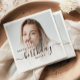 Modern birthday party napkins featuring a custom photo. Easily replace the sample image with a photo of the guest of honour. The word "birthday" appears in elegant black handwriting script. Personalize the text with the name and birthday year in black sans serif font. A white gradient overlay helps make the text pop.
