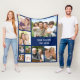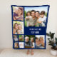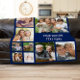 A personalized photo collage keepsake blue blanket for that perfect gift. Customize with nine photos of family, pets, memories, in memory of a loved one, special occassions, your photography, etc. and add one or two lines of text in simple white typography.