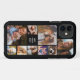 Personalized photo collage iphone case featuring a black background, 9 pictures of family, friends, and pets, plus a simple text template.