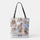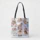 Personalized Best Mom Ever 7 Photo Collage Tote Bag. Celebrate Mom’s role as the “Best Mom Ever” with this custom photo tote bag, featuring the same beautiful design on both sides for a heartwarming, everyday keepsake. At the top, "Best Mom Ever" is displayed in elegant grey text over a soft white ombre, accented by a small grey heart on each side of the phrase for a sentimental touch. Below, a 7-photo collage showcases cherished family moments, creating a unique and memorable bag. Add the kids' names, with a single heart beside the names for a personal and loving detail. Perfect for Mother’s Day, birthdays, or any occasion, this tote bag combines treasured memories with stylish functionality, ideal for daily errands or special outings.