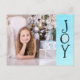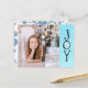 Add your family's names, holiday message and picture to this affordable postcard! Colours are blue black and white with pretty snowflakes throughout.