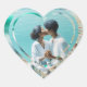 Cute stickers to seal your wedding invitations. Personalized heart photo romantic beach with sea glass.