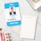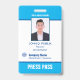 Customized press pass template design for special events. Add your employee photo and information. Customize with name, email, website, etc. on reverse.