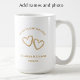 Create a beautiful Valentine's Day gift by adding the couple's names and photo and custom text. The golden copper botanical hearts are my own creation. The impressions of leaves and buds create a unique romantic accent. Add the couple's name and custom text or date for the perfect keepsake gift. Add your photo in the arch photo template for a romantic cup of coffee with your sweetie. This Valentine's day gift would be perfect for the coffee lover couple. All the modern elegant text is editable.
