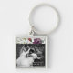 Personalized Photo Key Chain White Roses Gold Geom