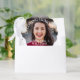 Personalized Photo Memorial paper ornament card, a simple and modern design with sans-serif oldstyle distressed font, custom name, date and photos. Perfect as keepsake, or Christmas holiday gift for family and friends. No minimum order.