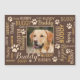 Brown Personalized gift of or for your dog. Customizable with your dog or cat photo image with your dog or cat's name. When you change the name Buddy to your own pet's name it will change all the typographical names at the same time. Word cloud art typography. Different font type and styles in brown and beige paw prints that looks great with a rustic barn style home. Trendy and modern design.