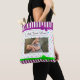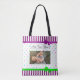 Personalized tote bag. Just add your baby, pet or family picture to this bag in the customize area. You can edit the text too! Add your baby's name, a favourite quote or your name! Pink, purple, blue, lime green polka dotted bag with polka dots and stripes.