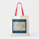 Personalized photo tote bag with your picture image. Make your own tote with custom photograph and text. Rectangular navy blue border template design with elegant font. Cute gift idea for wedding party.