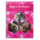 Add a personal touch to your notes with this adorable pink notebook featuring a playful red paw print pattern. Customize it with your name, title, and three hexagon-shaped photos to make it uniquely yours. Perfect for cat lovers, this notebook is ideal for journalling, sketching, or planning your day. A thoughtful gift or a special treat for yourself, bringing a dash of charm and personalization to every page!