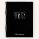 A cute, trendy notebook to take to physics class or for homework with a simple, minimalist cover in classic black and space for the school subject and your name to be personalized.