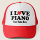 Guys and gals will love showing off their piano pride with this classic red heart I Love Piano music quote gift that has room for personalizing with your custom name.
