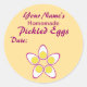 The canning stickers say, "Your Name's Homemade Pickled Eggs." Add your name to the template to personalize.