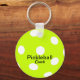 Personalized Pickleball Keychain for the pickleball coach/trainer in your life. Trendy black text on a yellow outdoor (Franklin X-40) ball.