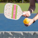 This Pickleball Paddle is ideal for wide range of players and experience. Featuring a hand wrapped grip and fiberglass & polypropylene honeycomb core, this lightweight paddle offers excellent feel and ample power for the competitive player. The smooth hitting surface and conventional shape allows for a bigger sweet spot for more solid contact.