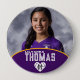 Show your support for your favourite volleyball player this season with this personalized picture player game day button featuring school colours of purple and gold. Customize with your player's name, number, and picture! Perfect for senior night or parents night! Go team!
