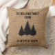 Personalized pillow with burlap print and pine trees with the coordinates.
