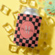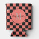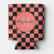 Personalized pink and black Chequerboard Pattern Can Cooler