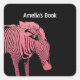Personalized Pink and black Zebra Bookplate Square Sticker