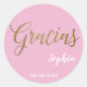 Personalized Pink and Gold Gracias Script Classic Round Sticker