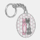 Personalized Pink and Grey Cuddly Cute Kitty Cats Keychain