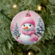 Personalized Pink Baby Christmas Snowman Ceramic Ornament