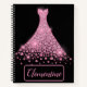 Personalized Pink Black Glitter Gown Sketchbook Notebook