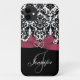 This monogrammed black and white fancy damask iPhone 5 Case-Mate Case has a photo of this design embedded into the hard plastic cover. The design is made up of a black and white damask pattern, a printed pink bow and ribbon, two hearts with diamonds and a black bottom portion where you can add your name and monogram initial in gorgeous script fonts. This iPhone 5 case cover is the perfect way to accessorize your iPhone 5. Be stylish and girly all at the same time. Design by Elke Clarke©2012. Graphics licensed for use.