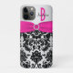 Personalized Pink, Black, Silver Damask Case-Mate iPhone Case