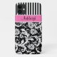 Personalized Pink, Black, White Striped Damask Case-Mate iPhone Case