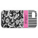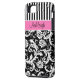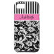 Personalized Pink, Black, White Striped Damask Case-Mate iPhone Case