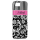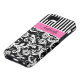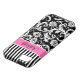 Personalized modern pink, black, and white stripes with damask Case-Mate Vibe™ iPhone 5 Case.