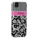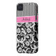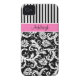 Personalized Pink, Black, White Striped Damask Case-Mate iPhone Case