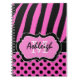 Personalized Pink Black White Striped Polka Dots Notebook