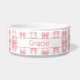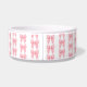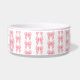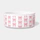 Girly Personalized Pink Bow doggie Bowl easily add your own custom text. Trendy coquette pink bow pattern.