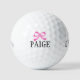 Personalized pink bow golf balls for women. Customizable template with custom name or quote. Fun gift idea for golfers and golfing fans. Cute Birthday gift idea mom, wife, friends, team, group, teacher, top instructor, bride, bridesmaids, caddie, marshal, sister, daughter, kids etc. White or custom background colour. Example name: Paige. Available on Callaway, Titleist, Bridgestone, Wilson and other good brands.