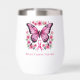 Beautiful Pink butterfly with watercolor florals and a pink breast cancer awareness ribbon on this thermal wine tumbler. Personalize it for you or a loved one.