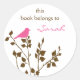 Pretty and trendy book stickers with a cute pink bird sitting on brown tree branches. Whimsical and unique personalized bookplates.