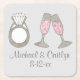 Personalized Pink Champagne Diamond Wedding Ring Square Paper Coaster