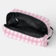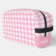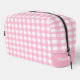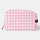 Personalized Pink Chequered Plaid Dopp Kit for toiletries and cosmetics.
