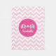 This blanket features a light pink chevron pattern with a hot pink circle and grey elephants. The sweet, modern elephants share a heart with a place for you to personalize this blanket with a name. You can easily change the name, font style, and background colour to make the perfect blanket for a sweet baby.