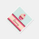 Paper napkins with pink cupcake and cherry on mint blue striped background.