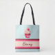 Personalized Pink Cupcake Mint Blue Background Tote Bag
