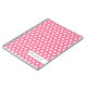 Bright and light pink dots pattern background featuring a label on the bottom right written a model name, which can be easily changed by your own text, name, monogram or tags.